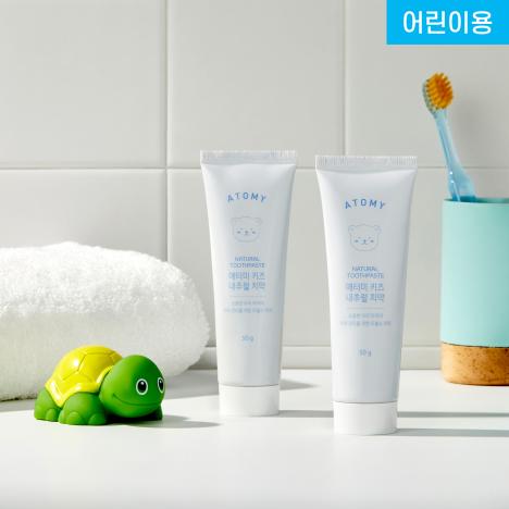 Атоми Детская натуральная зубная паста (50г x 2шт) — безопасный и эффективный уход за полостью рта для самых маленьких, начиная с 6 месяцев.