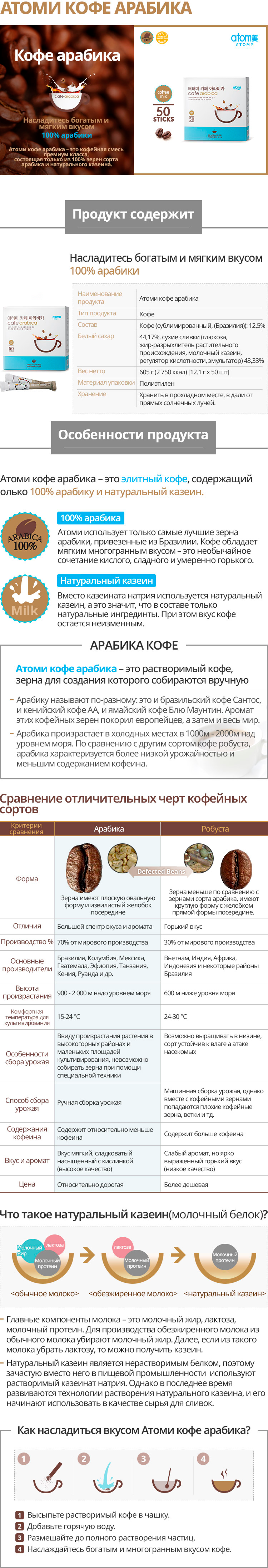 Атоми Кофе Арабика — это кофейная смесь премиум-класса, в которой используются кофейные зерна 100% Арабики и натуральный казеин.