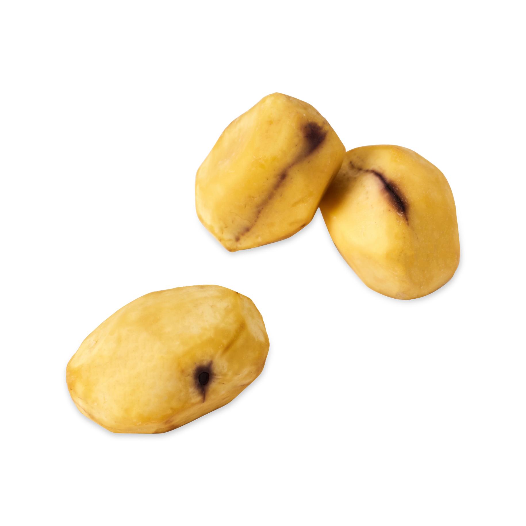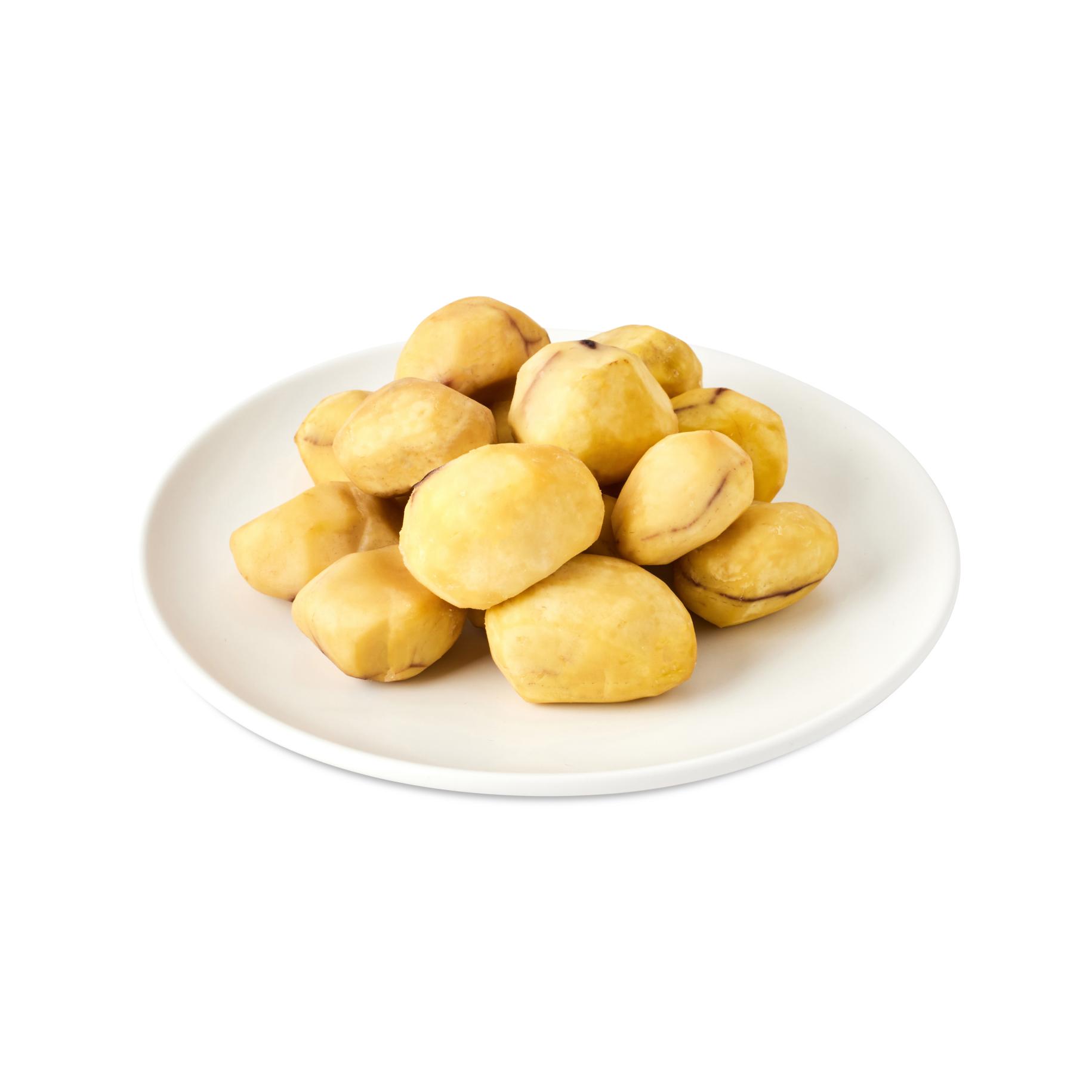 Специальная патентованная технология обжига при температуре 650°C сохраняет вкус, аромат и текстуру каштана, эффективно очищая его от кожуры. -